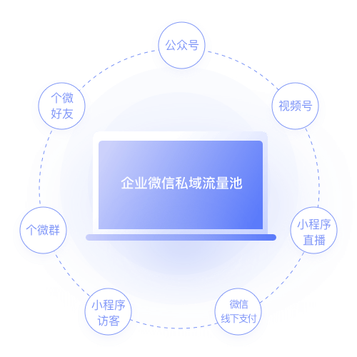 電商或零售行業,原有的會員或CRM系統,存儲了大量客戶信息。 其中最重要的是客戶手機號,我們提供了高效的工具,能快速把手機號對應的個人微信, 引導到商家企業微信中進行統一管理。